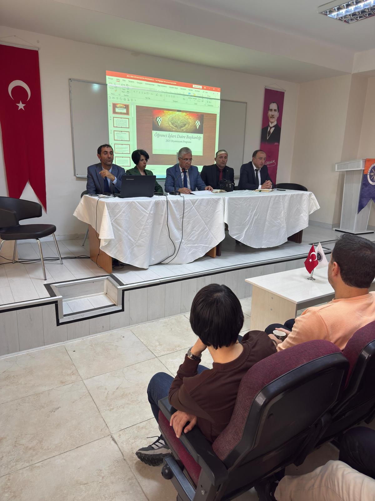 2025-2026 Akademik yılında Meslek Yüksekokulumuza yeni kayıt yaptıran ve halen eğitimine devam eden öğrencilerimiz için MYO Konferans Salonu'nda oryantasyon programı düzenlendi. Oryantasyon eğitimi kapsamında gerçekleşen programa ARÜ Öğrenci İşleri Daire Başkanı Evrin YILDIZ ve Şube Müdürü İbrahim ATALAY ile Sağlık Kültür ve Spor Daire Başkanı Metin ÇİMLİ katılım sağladı. Program kapsamında; Üniversite tanıtımı, Öğrenci Bilgi Sistemi kullanımı, Kütüphane web sayfası kullanımı ve Sağlık Kültür ve Spor Daire Başkanlığı görev ve çalışmaları hakkında bilgilendirme yapıldı.