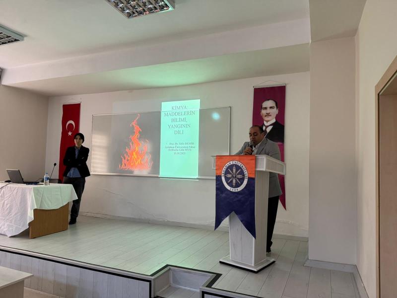 Ardahan Üniversitesi Nihat Delibalta Göle Meslek Yüksekokulu tarafından, kimyanın günlük yaşamla ilişkisini ve yangın olgusunun bilimsel yönünü ele alan “Kimya: Maddelerin Bilimi, Yangının Dili” başlıklı seminer düzenlendi. Etkinlik, 15 Ekim 2025 tarihinde Nihat Delibalta Göle MYO Konferans Salonu’nda gerçekleştirildi. Seminerin moderatörlüğünü Öğr. Gör. Erol Özçelik, konuşmacılığını ise Doç. Dr. Yeliz Demir üstlendi.